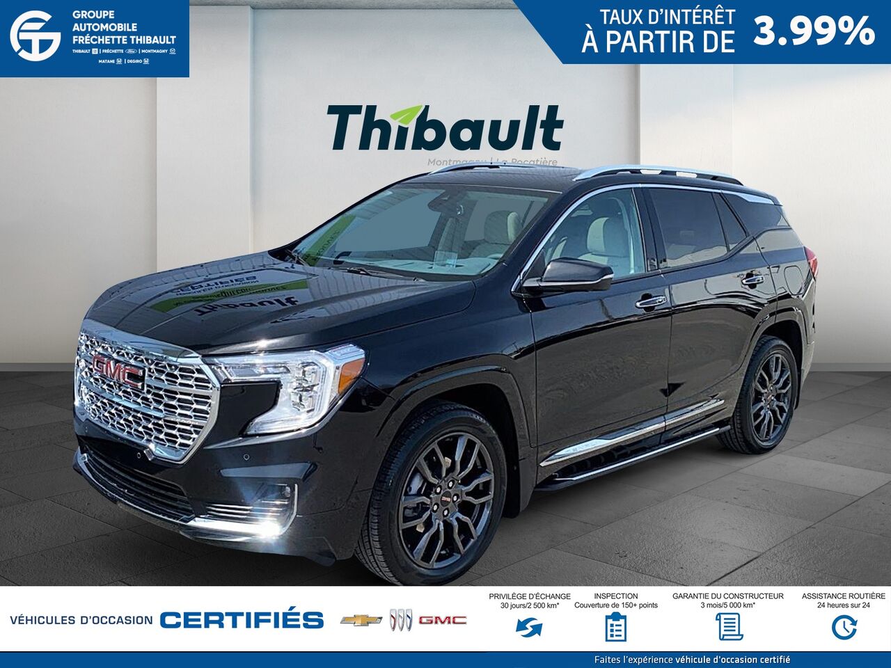 Ce GMC TERRAIN 2024 est disponible chez Thibault GM/Cadillac Montmagny à Montmagny. Contactez notre équipe des ventes ou venez nous visiter au 500 Avenue St David pour obtenir plus d'informations, en faire l'essai ou le réserver.