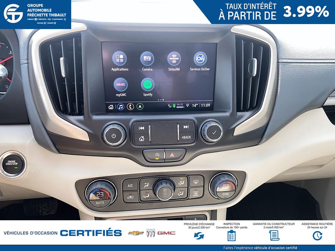 • Abonnement de 3 ans au service Accès à distance d'OnStar. Le service Accès à distance vous donne un contrôle à distance simplifié de votre véhicule dûment équipé et déverrouille une série de fonctions intéressantes dans votre application mobile myGMC. Veuillez consulter votre concessionnaire pour obtenir tous les détails. (Ne comprend pas les services d'urgence ou de sécurité. La période de 3 ans débute à la date de livraison du véhicule. Le service requiert un système électrique fonctionnel (y compris la batterie), la réception de données sans fil et un appareil ayant accès à une connexion de données. Consultez le site onstar.ca pour connaître les détails et les restrictions liés au système. Les caractéristiques et les fonctionnalités varient selon le modèle de véhicule. Offert sur certains appareils Apple et Android. Un appareil ayant accès à une connexion de données est requis. Non remboursable et sans valeur monétaire.)